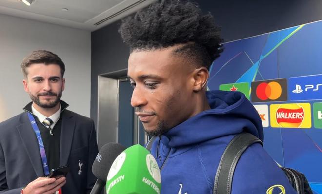 在欧冠主场3-0大胜布拉格斯拉维亚后,热刺前锋库杜斯在混合采访区接受了采访。